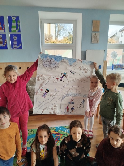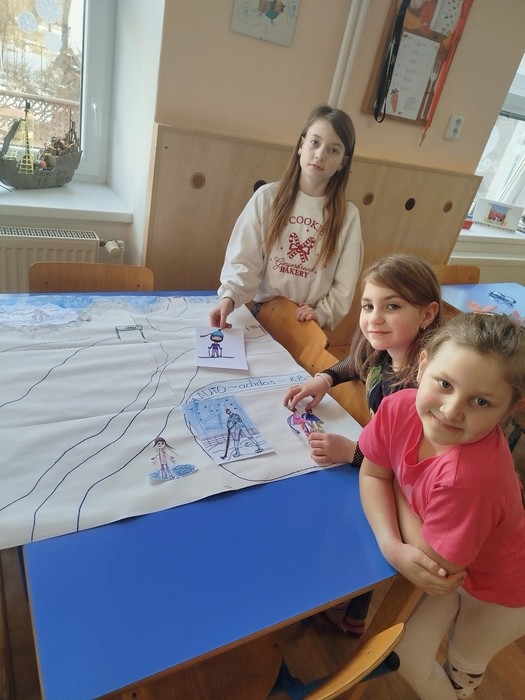 v únoru se hýbaly hlavně děti. Byl to pohyb při hrách na sněhu a stavění sněhuláků. Mnoho pohybu jsme si užili při sportovních hrách v sokolovně. V družině jsme k pohybu využili krásné sportovní pomůcky. V pohybu byly i dětské ruce při malování zimních sportů a vyrábění origamů a nalepování obrázků ze samolepek. Uspořádali jsme si besedu o zimních sportech a olympijských hrách.
